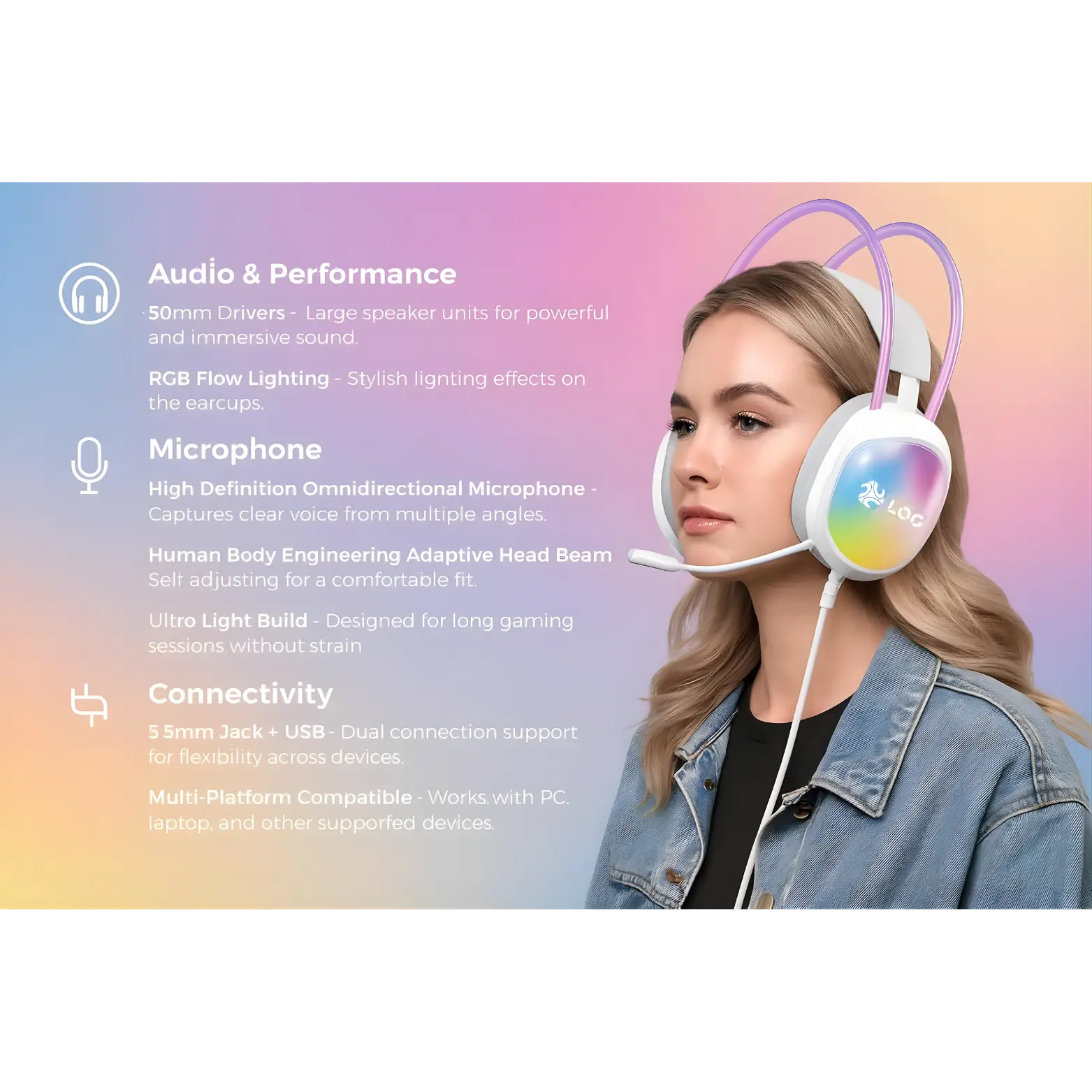 The LOG G300 Gaming Headset is more than just a headset – it’s a complete gaming experience. With precision-tuned 50mm drivers, a high-definition microphone, and ergonomic comfort, the G300 is engineered to help you hear more, communicate better, and play longer. Add in RGB Flow lighting and universal compatibility, and you have a headset that performs as good as it looks.