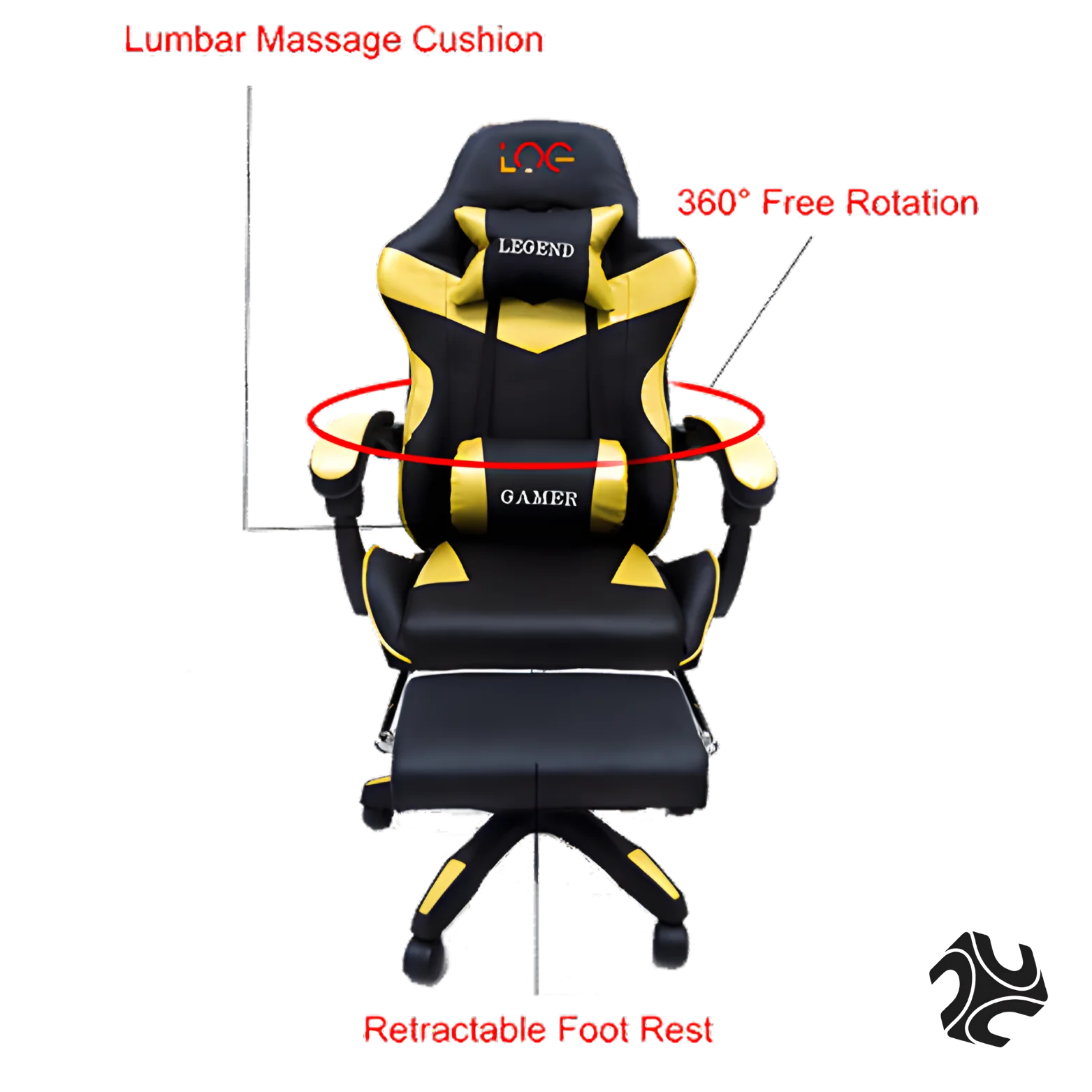 - Massage Feature. Elevate your relaxation with the lumbar massage cushion, a unique feature designed to alleviate stress during intense sessions.